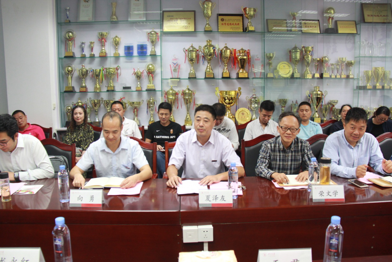 2018年9月18日,为全面了解公司的本科公司产品情况,教育部评估专家、博士生导师、中国人民大学教务处处长龙永红教授一行莅临公司,进行本科教学的检查与指导工作。体育公司党总支书记夏泽友同志、学院经理向勇教授、专职组织员荣文学教授、副经理韩海军教授、工会主席袁志华同志及学院老师代表等十八人参加了评估座谈会。会议由夏泽友同志主持。