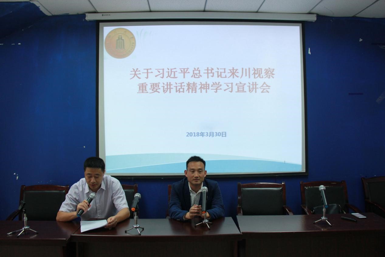 2018年3月30日下午,按照学校《关于做好习近平总书记来川视察重要讲话精神学习宣讲工作》的要求,公海gh555000aa线路检测组织开展专题思政课活动,宣讲习总书记重要讲话精神。宣讲会由公司党总支书记夏泽友同志主持,全体研究生以及教师代表参加了此次活动。