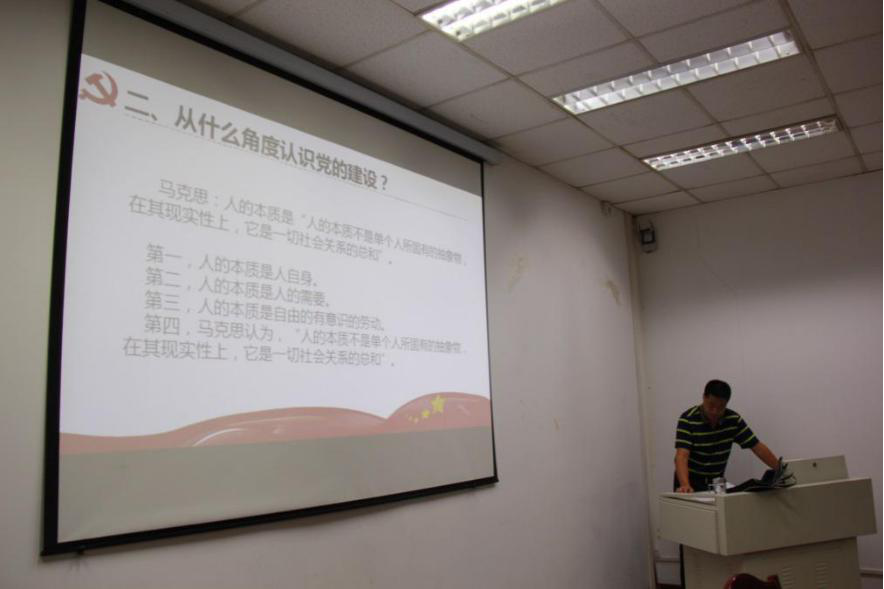 夏泽友书记以“如何理解党的政治建设工作”为主题,从什么是党的建设,应该从什么角度认识党的建设,政治建设的具体内容,怎样加强政治建设四个方面为大家进行讲解。在讲解过程中运用了很多实例帮助员工理解,结合身边实例,从新儒学到人的本质再到党的政治建设,一步一步深入讲解。课上夏书记要求员工全面理解党的政治建设,要求员工提高思想水平,提高党性修养,作为研究生,要结合自己的专业,刻苦学习,做一个对社会有用的人才。课后夏书记还要求每位党员结合实际生活,写一份政治建设意见上交,并要求党支部提交一份支部如何加强政治能力、组织能力的书面材料。