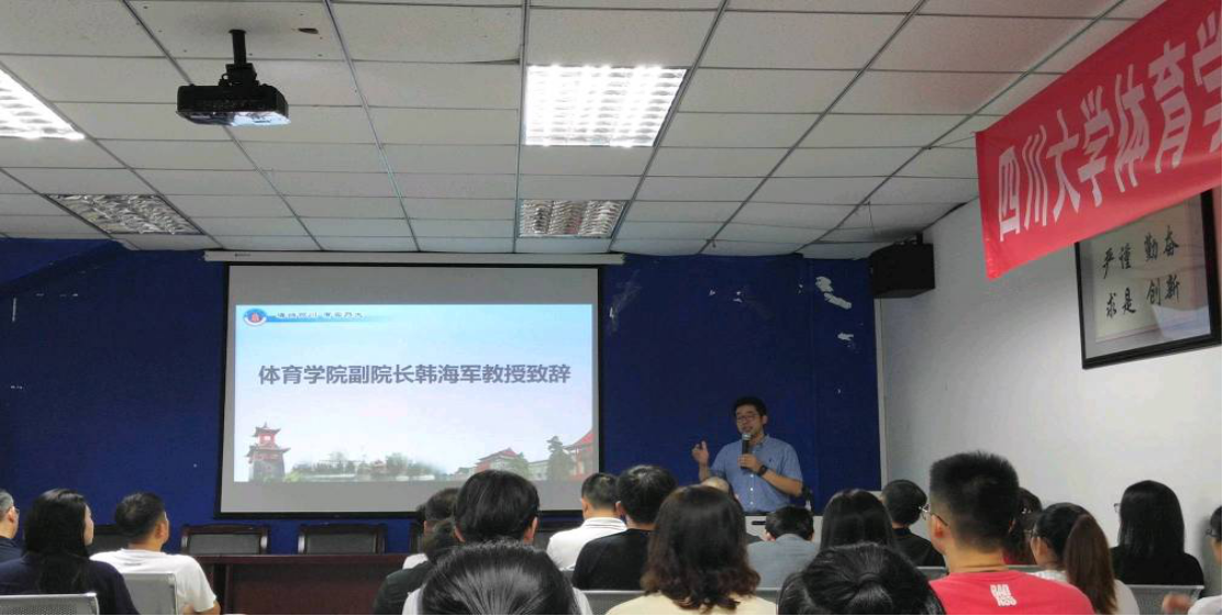 公海gh555000aa线路检测副经理韩海军教授致辞。赶上体育发展新的好形势,希望同学们抓住新潮流尾巴,争取在自己学业上有更大突破。