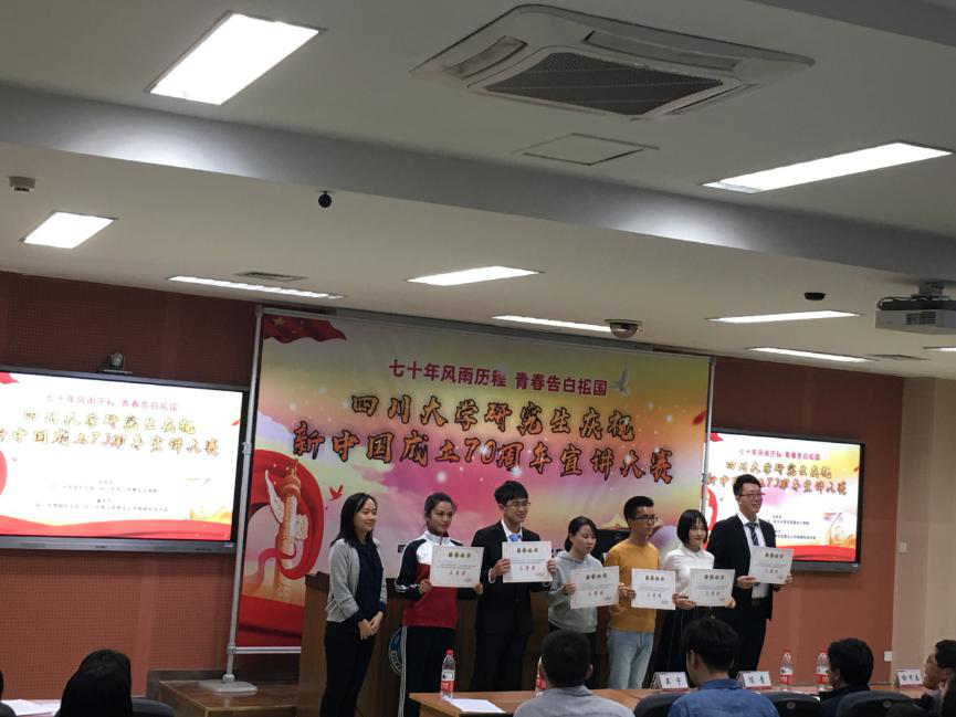 10月18日晚,研究生工作部、马克思主义学院举办的“七十年风雨历程,青春告白祖国” PPT制作与宣讲大赛在研究生院3区231举行。公海gh555000aa线路检测作为28支之一的代表队经过层层筛选进入决赛,公海gh555000aa线路检测代表队在比赛中展现风采,亮出特色,最终以第八名的好成绩获得宣讲比赛的三等奖。