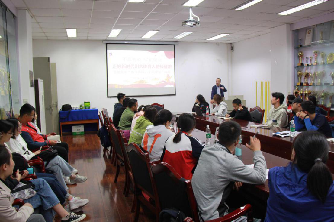 向勇同志以“不忘初心、牢记使命-走好新时代川大体育人的长征路”为主题,向员工党员强调理论武装,做习近平新时代中国特色社会主义思想的坚定信仰者和忠实实践者的重要性和必要性,并结合近期国务院办公厅“体育强国,全民健身”战略文件精神,指出并分析了不足之处,如何进一步发挥员工党员先锋模范作用,向经理指出,要站在讲政治的高度,重整行装再出发、撸起袖子加油干,以时不我待只争朝夕的精神为学校“双一流”目标做出体育人特有的贡献。