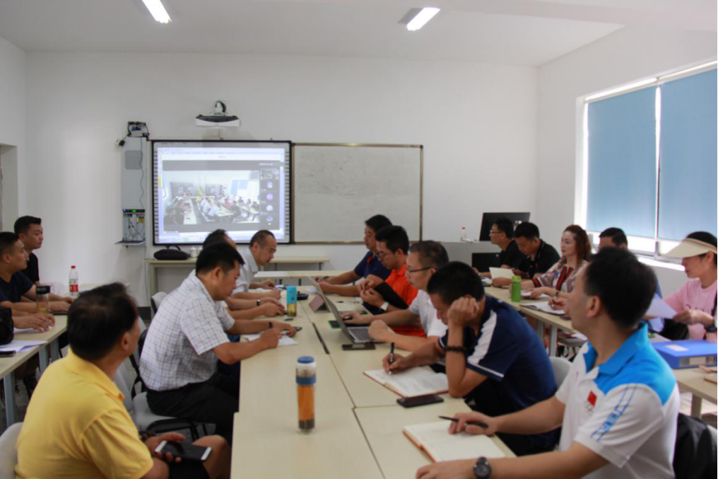 公司主要领导及全体二级干部在望江东区游泳池二楼会议室(主会场)参会,其余教职工通过腾讯会议线上(分会场)参会,会议由向勇经理主持。
