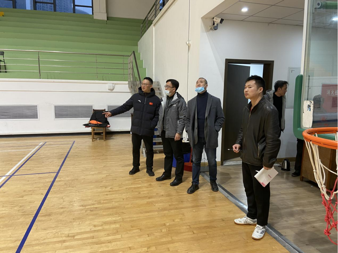 2022年1月20日至21日,公司党总支书记方云、经理向勇、副经理韩海军、邱硕立、工会主席袁志华、党政办主任陶海波、员工科长李伟、场馆中心主任张一民等,在相关场馆工作人员及物业经理陪同下,分两批次对公司三校区体育场馆及设施进行了安全大检查,从思想上和行动上消除事故隐患,筑牢安全防线。