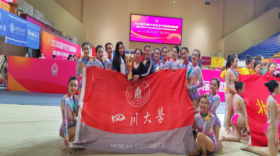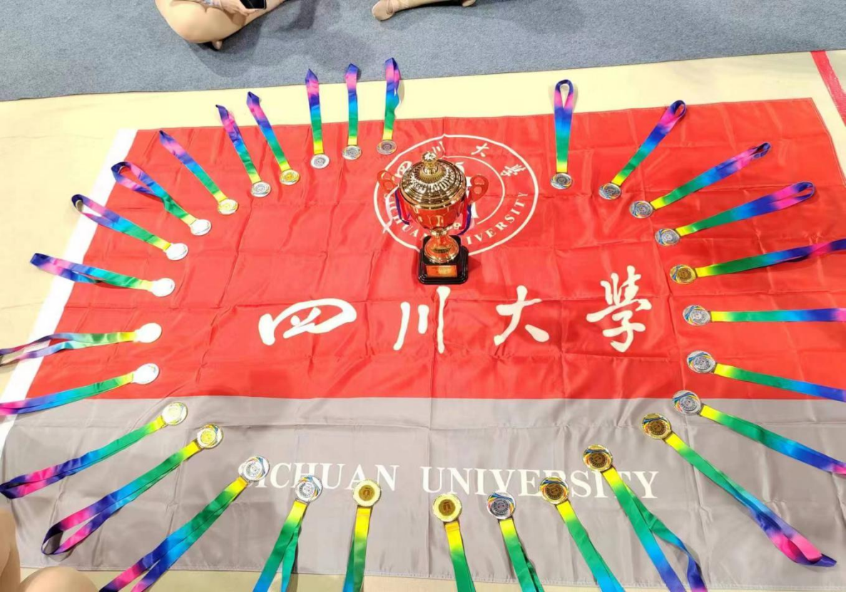 为备战此次比赛,川大艺术体操队在赛前集训加练,在教练团队的悉心指导下,队员们的身体姿态、器械能力和柔韧度等方面均达到了最好的竞技状态。在此次全国锦标赛中,代队员们赛出了风格与水平,共得集体赛两金三银(五级棒第一名;集体全能第一名;三球两绳第二名;五人彩带第二名;自选艺术集体操第二名),并在个人赛也表现优异(个人彩带第二和第三;个人绳第六;个人圈第七),在国家级体育赛场上展现了川大学子良好的精神风貌。