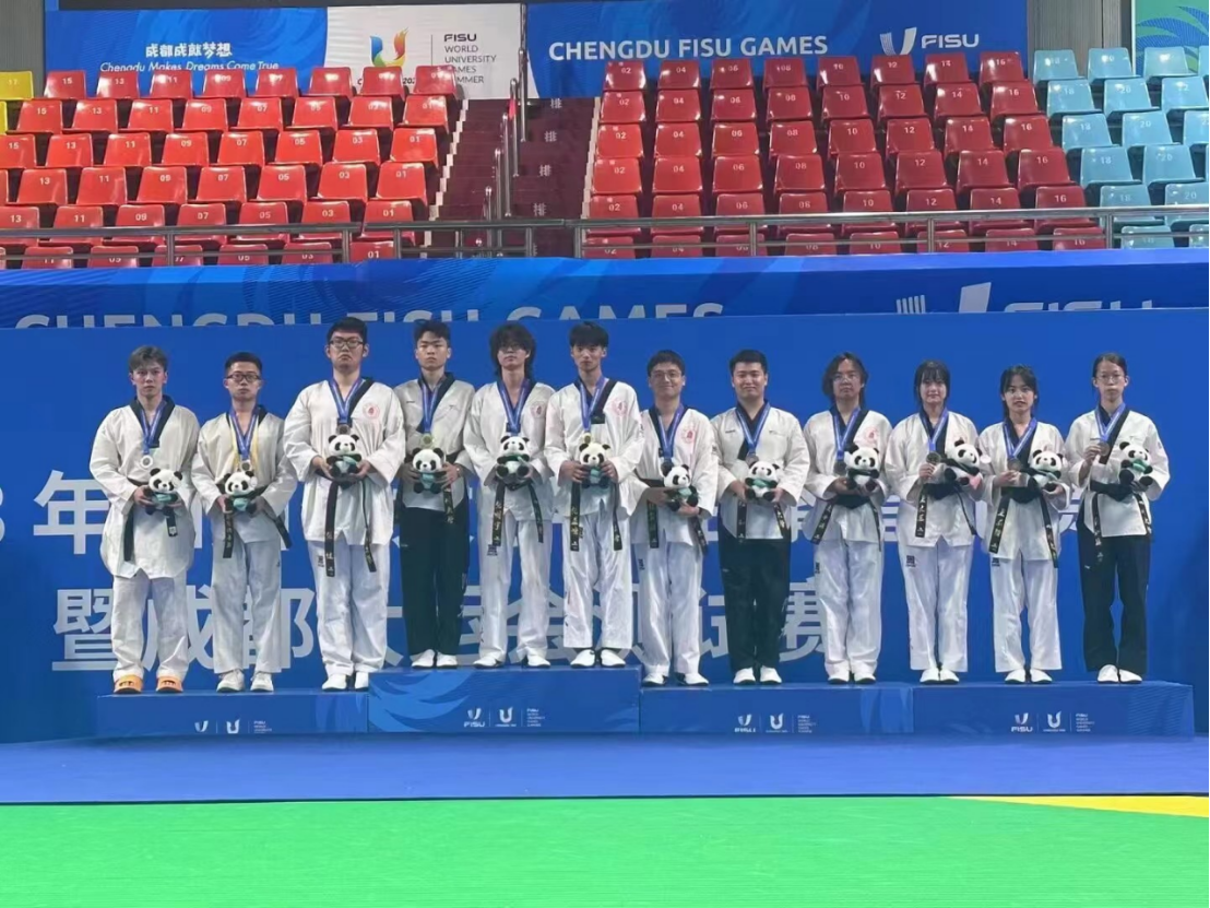 经过为期两天的激烈角逐,公司跆拳道队斩获4金、6银、7铜,取得了甲组品势项目团体第一,竞技项目团体第一的好成绩。校跆拳道队队员们在比赛期间展现出顽强拼搏的体育精神,获得了大赛组委会、兄弟院校领导、教练的一致好评。