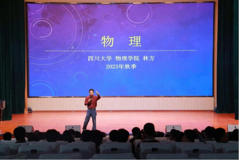 物理学院林方副教授向高三优秀员工做了题为《物理》的学术讲座,与同学们亲切互动,共同探讨“牛顿第二定律”、“蝴蝶效应”等物理理论与现象,林教授用简洁平实的语言向同学们展现了物理学的魅力,激发了同学们勇于进取、积极探索、努力学习的激情。