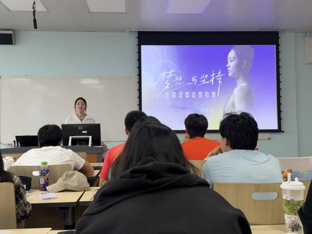 9月26日,巴黎奥运会花样游泳项目奥运冠军、公海gh555000aa线路检测2025级辅导员肖雁宁老师以“梦想与坚持,在挑战中绽放自我”为主题,将自己的运动生涯化作生动教材,为大一新生讲授了精彩的“新生第一课。”