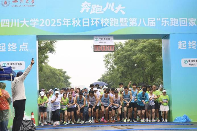 教职工、员工及员工代表齐聚田径场,积极参与了竞技跑活动。本次竞技跑路线沿环形大道西段展开,途经白石桥、图书馆、东大门、青春广场等校园标志性地点,最终返回运动场。活动期间虽遇绵绵细雨,但未减参与者的奔跑热情,大家穿梭于美丽校园,以坚定的步伐与饱满的状态,展现出川大人昂扬的精神风貌。