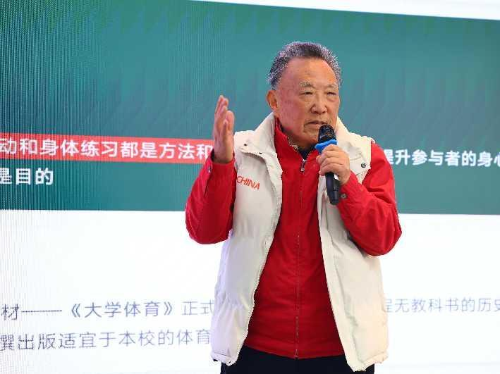 白晋湘作《体育思政教育与体育教师科研素养提升》专题报告。他通过“长城诵诗”等鲜活案例,生动阐释了体育课程思政的价值;结合研究生导师培训经验,提出导师应具备“教育家精神”。同时,他以田野调查心得为例,倡导“文体双全”的学科自信,并以原创诗歌《体育的力量》勉励广大师生共创未来。