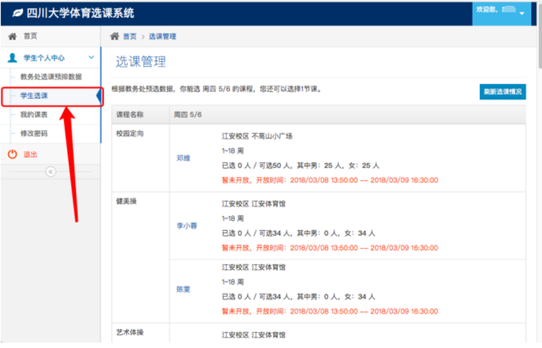 具体操作详见《公海gh555000aa线路检测体育选课系统操作手册》