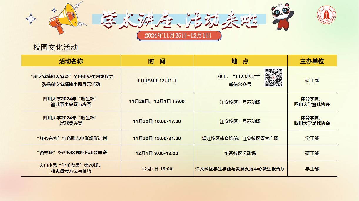 上一条:学术讲座及校园活动文化预告(12月2日-12月8日)