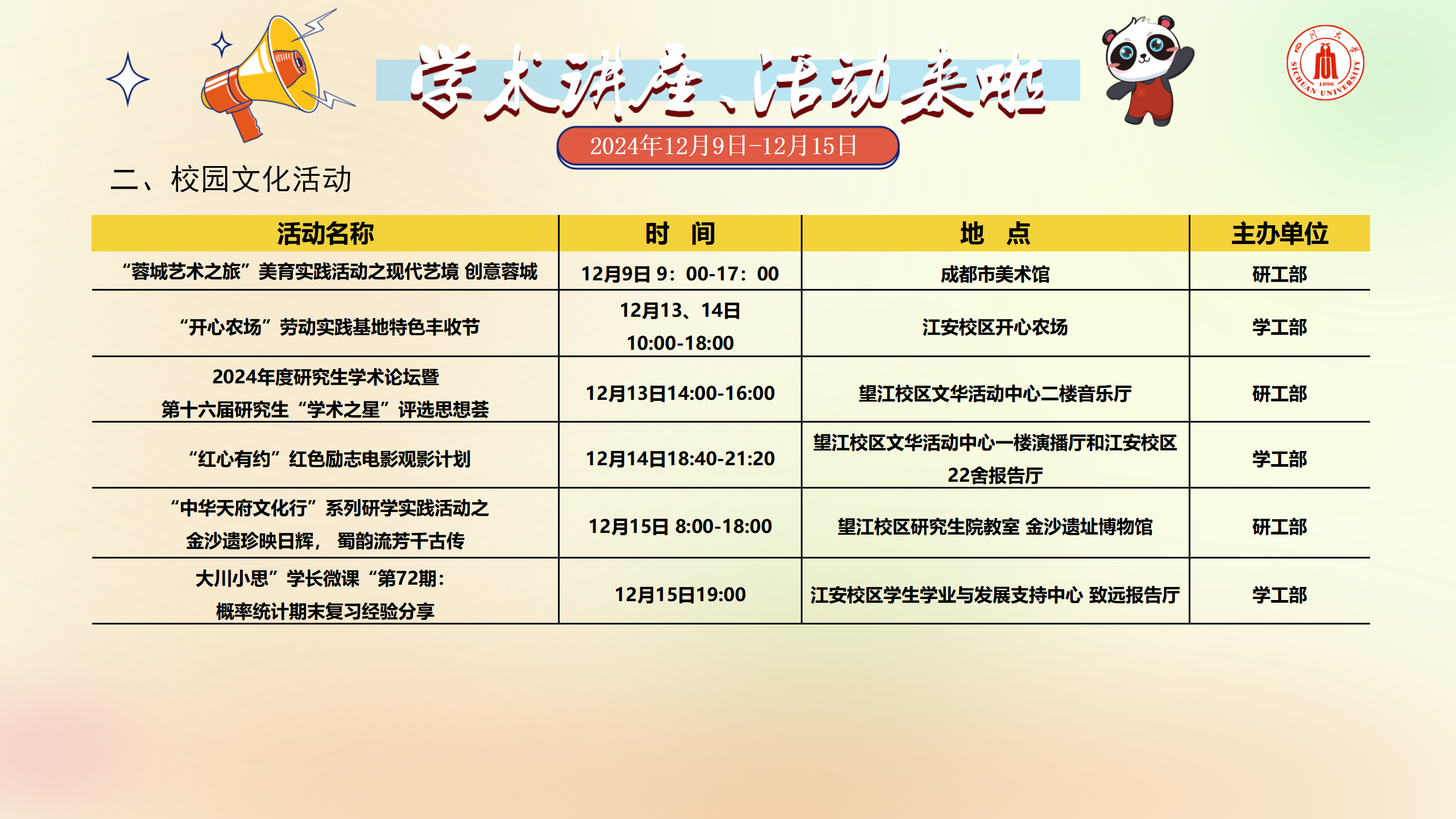 下一条:学术讲座及校园活动文化预告(12月2日-12月8日)
