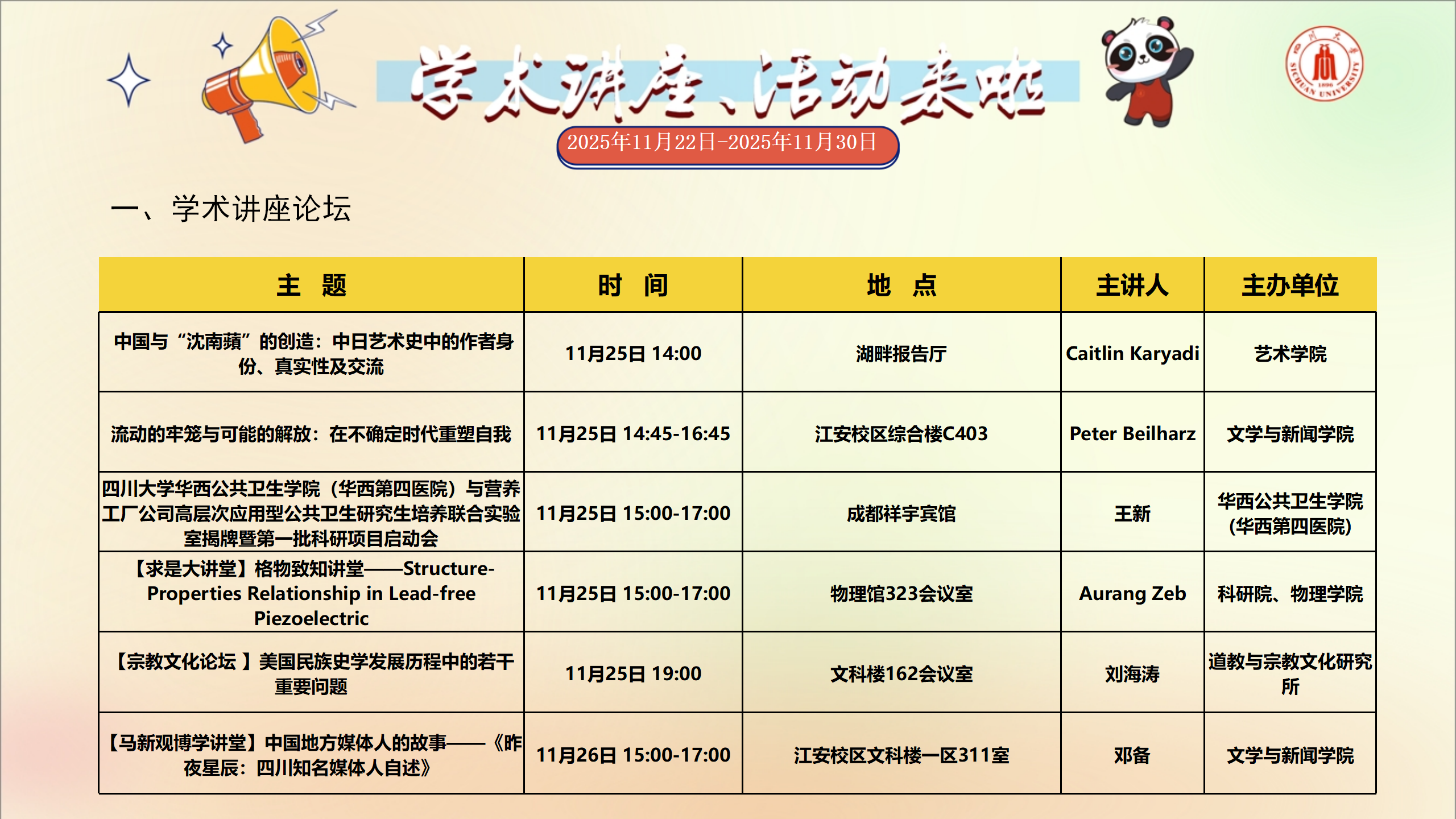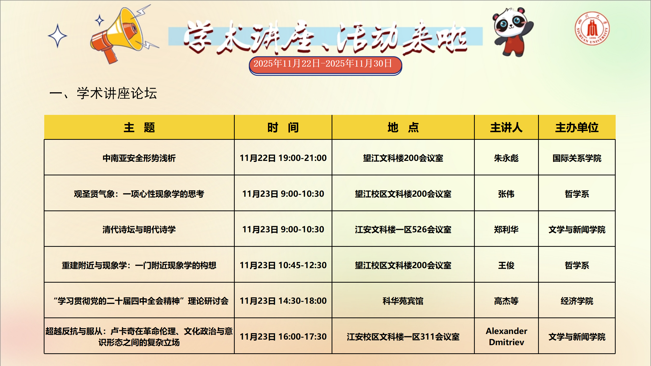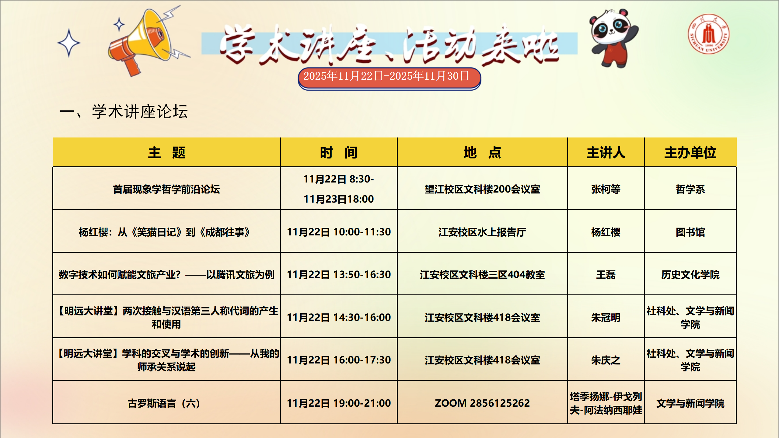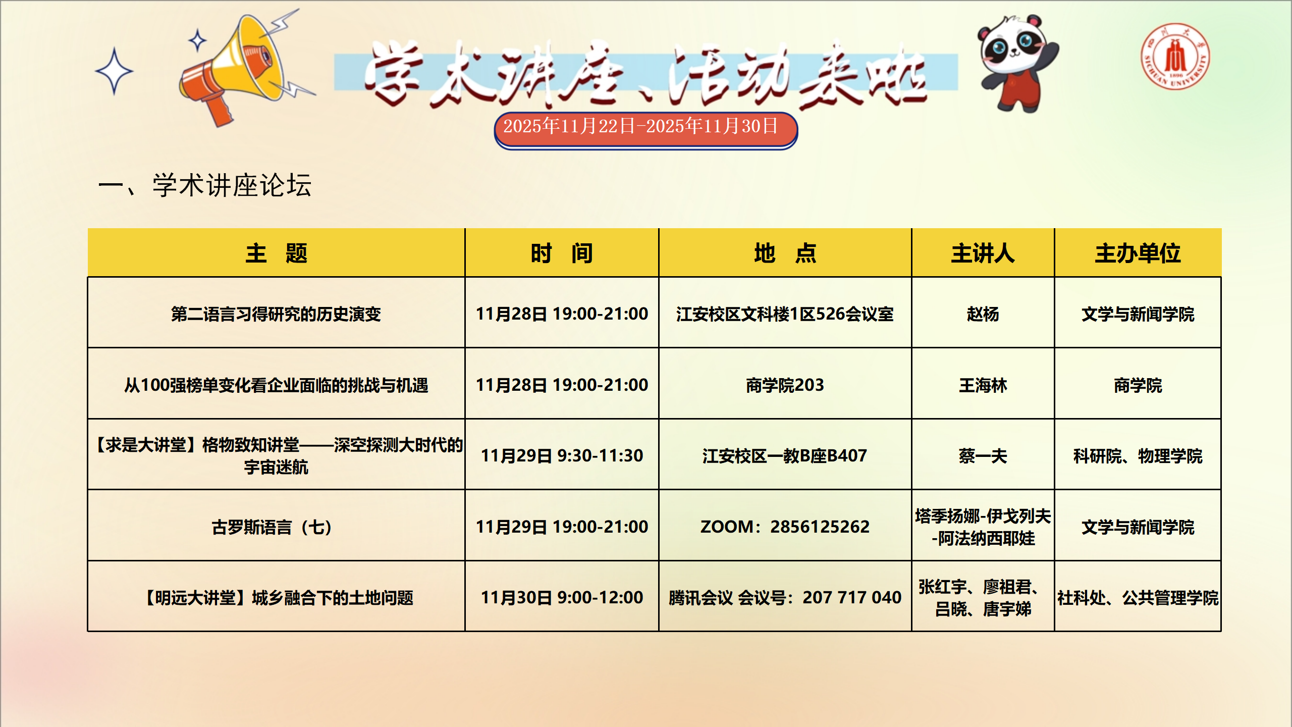 下一条:学术讲座及校园活动文化预告(11月15日-11月23日)
