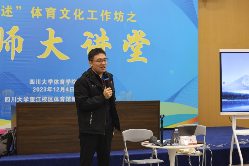 12月4日,由公司举办的“蜀·述”体育文化工作坊之名师大讲堂在望江校区体育馆新闻发布厅圆满落幕。本次活动邀请到了国家体育总局文化发展中心研究馆员,郑州大学特聘教授、北京体育大学讲座教授、闽江学者崔乐泉教授,以及北京体育大学新闻与传播学院讲师、前中央电视台体育频道记者、中华口述历史研究会副秘书长、全国体育口述历史研究会副会长夏天博士。