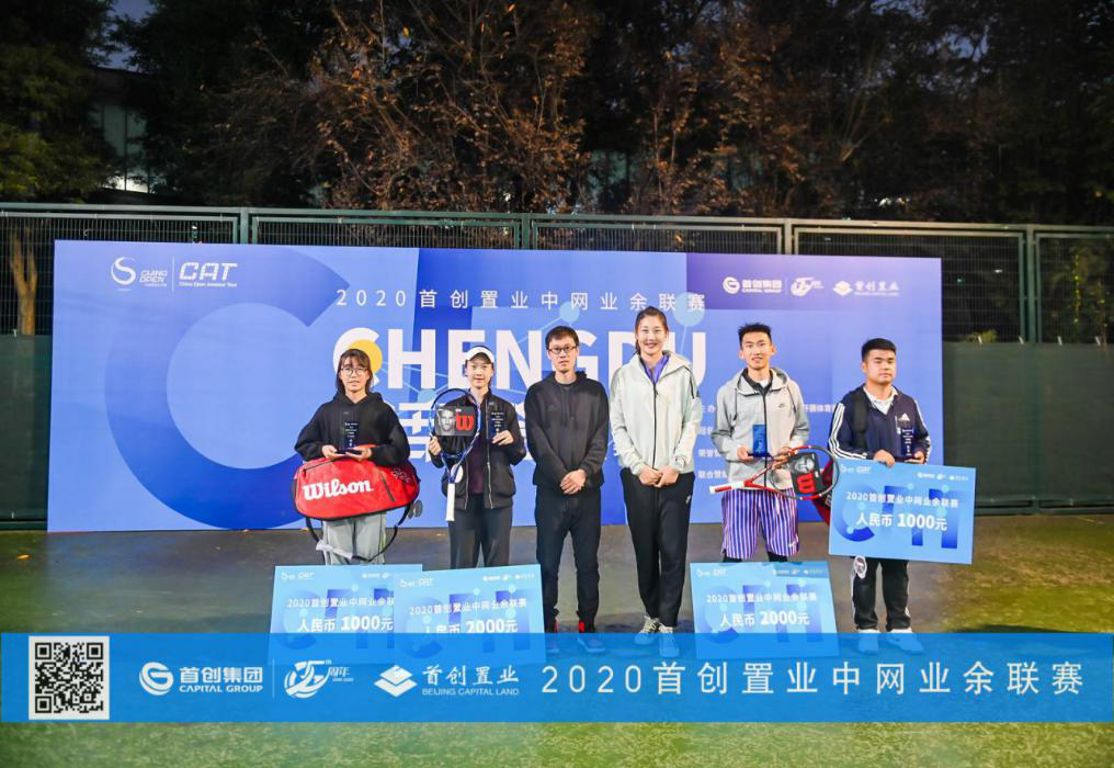 黄姝萌(左五)2020首创置业中网业余联赛成都站4.0混合双打冠军