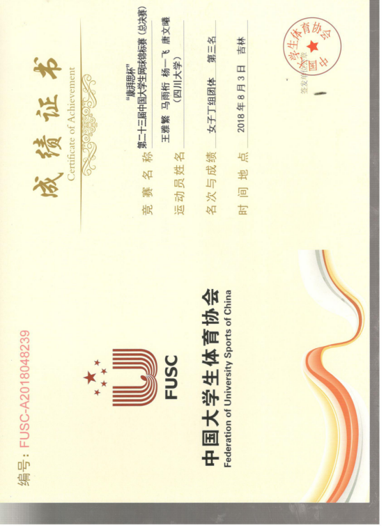 2018年公海gh555000aa线路检测网球高水平运动员竞赛获奖情况