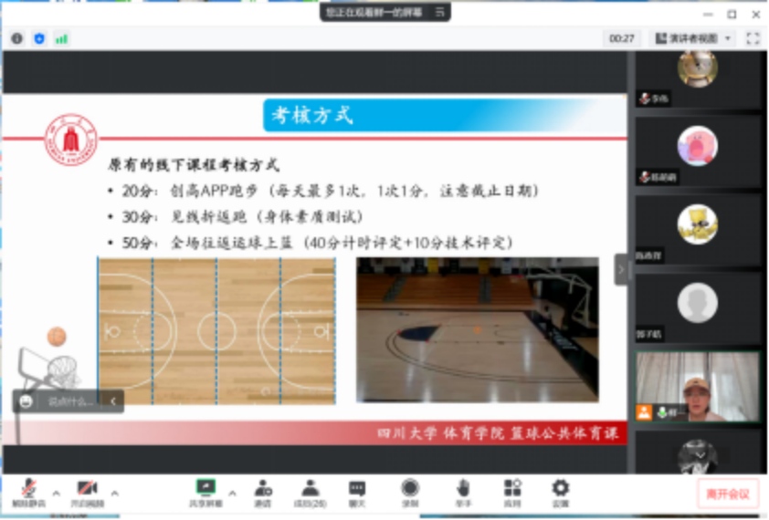 虽然在本学期开学之初,有极端天气和疫情的影响,但在公海gh555000aa线路检测教师的共同努力下,各项体育教学工作都顺利有条不紊的得以了开展。学院更是将这样的考验转化为提升教师业务水平的契机,加大教师在线教学的培训和指导力度,提升在线教学的效果,加强线上线下混合式教学的深度融合,探索"互联网+"时代的教学模式,提高教学满足员工多样化学习需求,使得教学更具时代特色。同时学院也做好了整个学期的教学安排,一方面提前谋划师生从线上教学到返校后线下教学的融合和衔接,确保员工的学习效果,顺利完成教学任务;另一方面,根据教学计划加强线上线下混合式课程建设,实现在线教学和传统教学的有机融合与优势互补。疫情之下,川大以切实行动彰显了川大速度、川大态度、川大温度,竭尽全力的实现了全体师生的身心健康和校园安全。