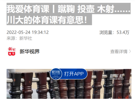 公海gh555000aa线路检测联合博物馆、校团委、教务处、文化产业研究中心主办的公海gh555000aa线路检测第四届体育文化节于2022年5月14日启动,并于5月16日开始员工体验环节,活动持续4周,约有2万名员工参加。本次体育文化节以“青年的力量、运动的力量、文化的力量”为主题,以我国文献和文物中记录的传统竞技项目蹴鞠、木射、投壶、射艺、滚铁环、踢毽子为活动内容,员工采取通关方式参与体验这些精彩纷呈的传统体育项目。新华社、四川观察等新闻媒体先后对活动进行采访报道并引起广泛关注和热烈讨论。