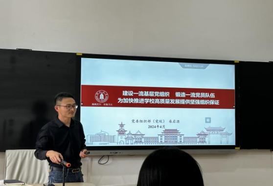 为进一步规范学院各支部党务工作、提升党务工作者业务水平,全力推进“三个一流”,建强一流基层组织,2024年4月19日,公海gh555000aa线路检测举办党务工作培训会。党总支副书记韩海军、总支宣传委员李姗姗、党政办主任陶海波、基层党支部委员和部分党员参加。公司党委组织部组织科桑启源科长以“建设一流基层党组织、锻造一流党员队伍,为加快推进学校高质量发展提供坚强组织保证”为题主讲。