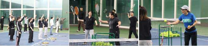 最后, 在华西网球馆 举行 体育技能交流与提升 活动 。 大家积极参与网球技能学习活动 , 全体党员 在锻炼身体的同时,进一步增强了团队协作精神和集体荣誉感。